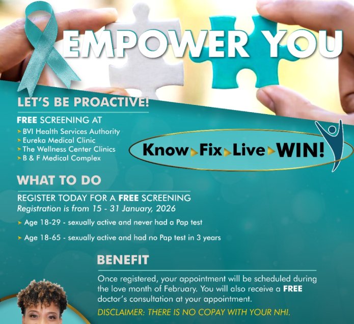 Dr. Penn, a WINBVI Ambassador and titleholder Mrs. British Virgin Islands 2022/2023, has announced the launch of her 2026 FREE Pap smear screening initiative, titled “EMPOWER YOU!”, aimed at empowering women to take a proactive approach to their reproductive health.